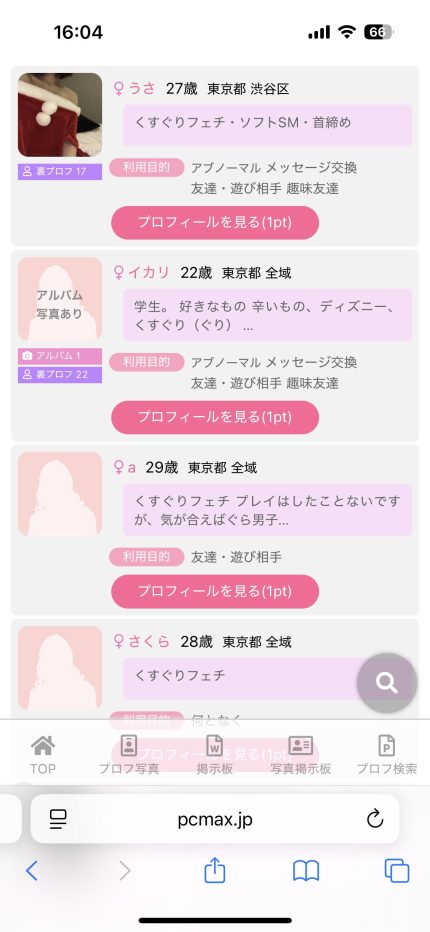 | 特徴 | ・くすぐりたい方、くすぐられたい方向け ・若い女性 |
